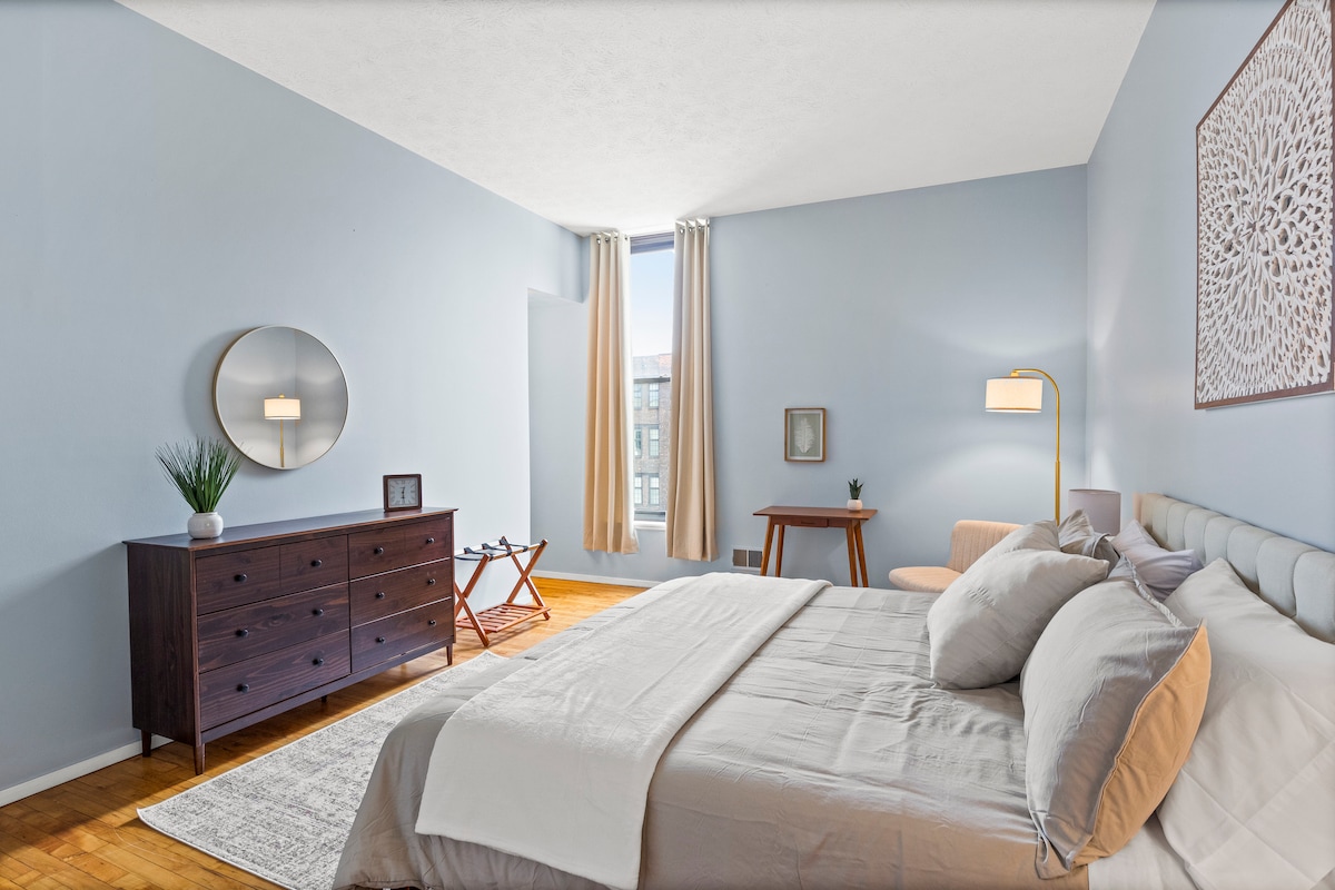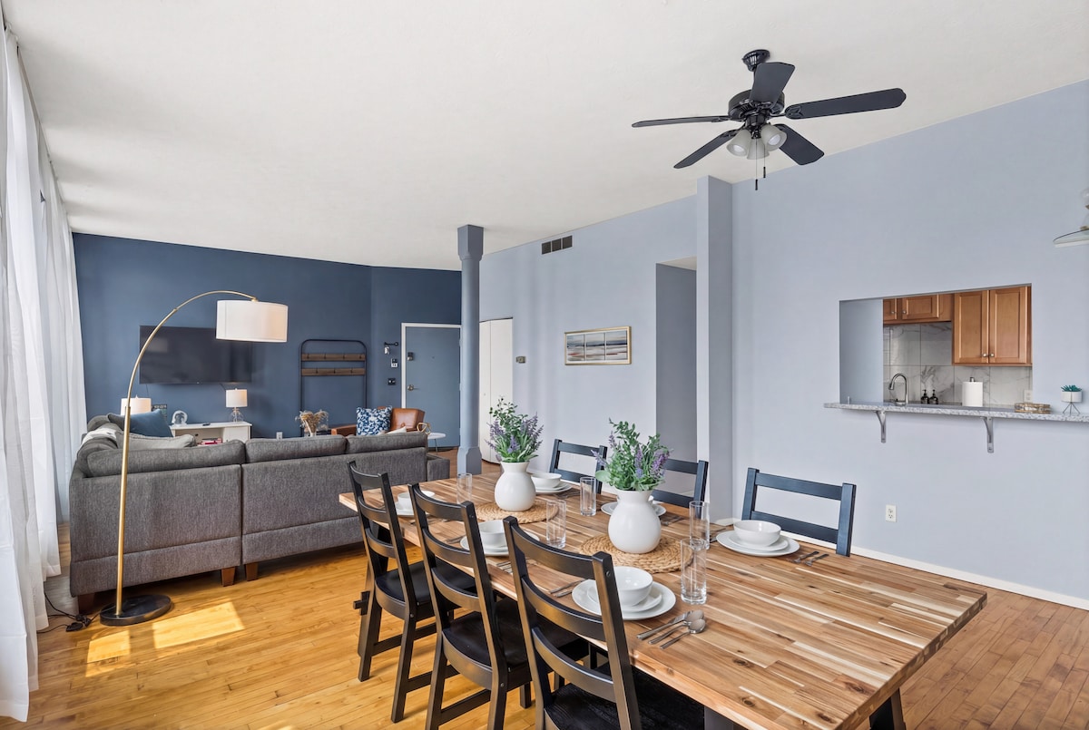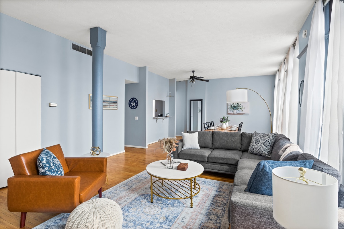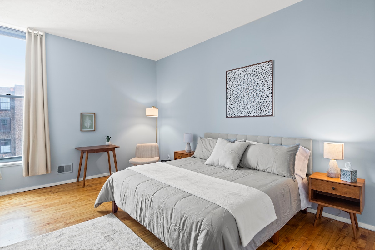 Stay in the heart of the city and experience the best food, business and entertainment nearby. With skyline views, and abundance of space and classic hardwood floors, this loft has everything you need.