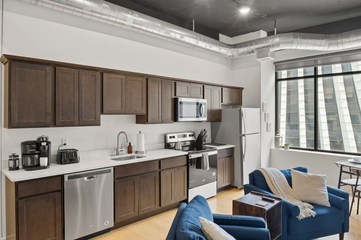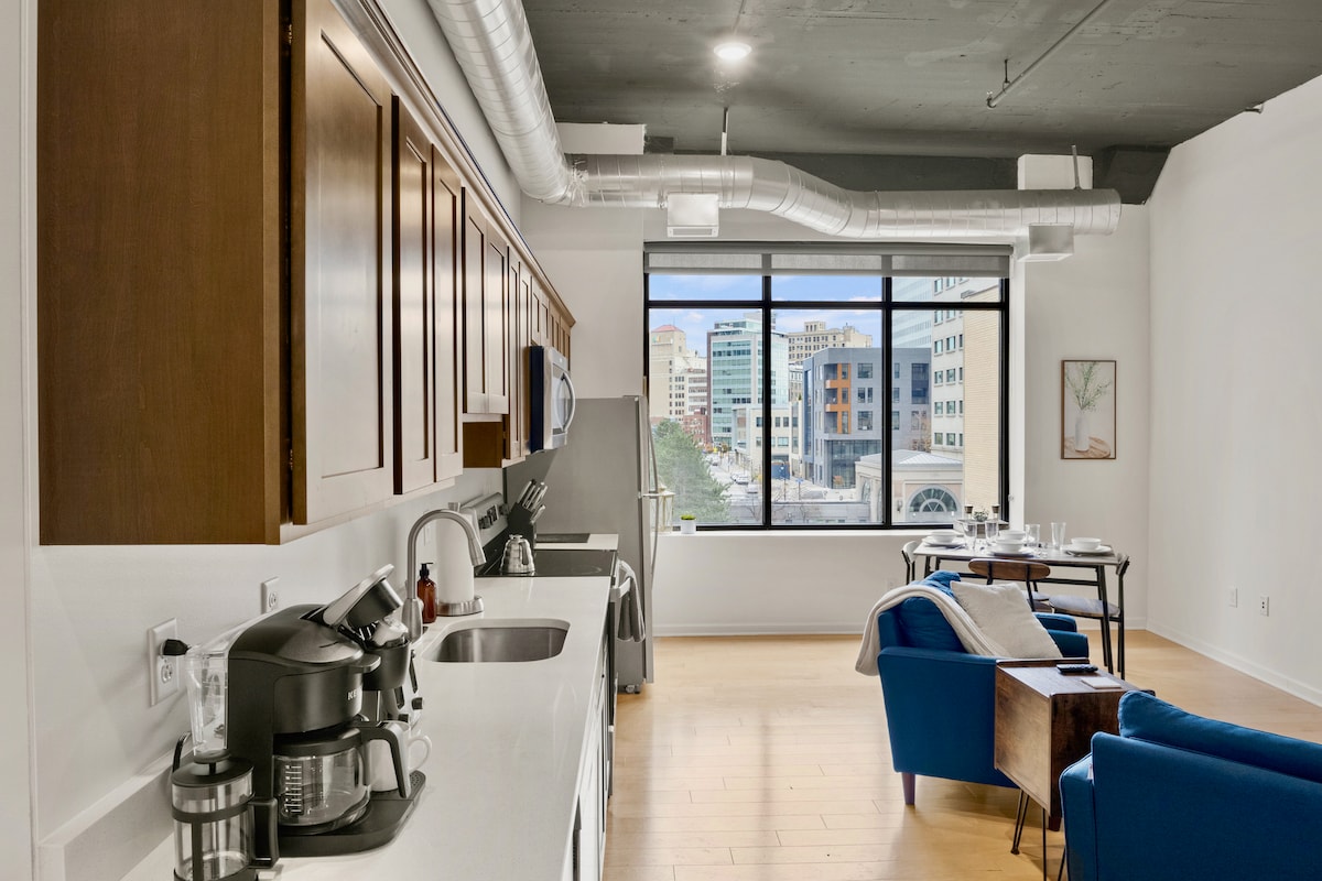 RochesterEnjoy this beautiful, 1 bedroom suite with incredible views of downtown Rochester. Enjoy all the comforts of home within a short walk to spots like the Riverside Convention Center and Blue Cross Arena. At Lofted Living, we provide a seamless experience for you, including a dead simple check-in process and periodic check-ins during your stay. With 24/7 availability we will assist you with anything from restaurant suggestions to providing additional towels. Sit back and enjoy your stay!